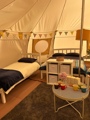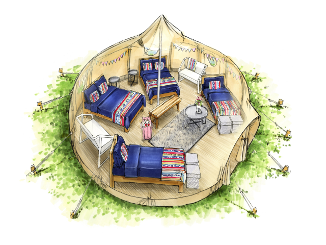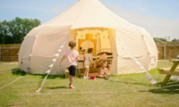 Our spacious Luna Tents are perfect for larger families who want to camp in comfort. Each one comes furnished with two double beds, two singles, cosy seating, storage, and all the essentials for a relaxed stay - including electric hook-up, hot water bottles, and blankets to keep things snug.