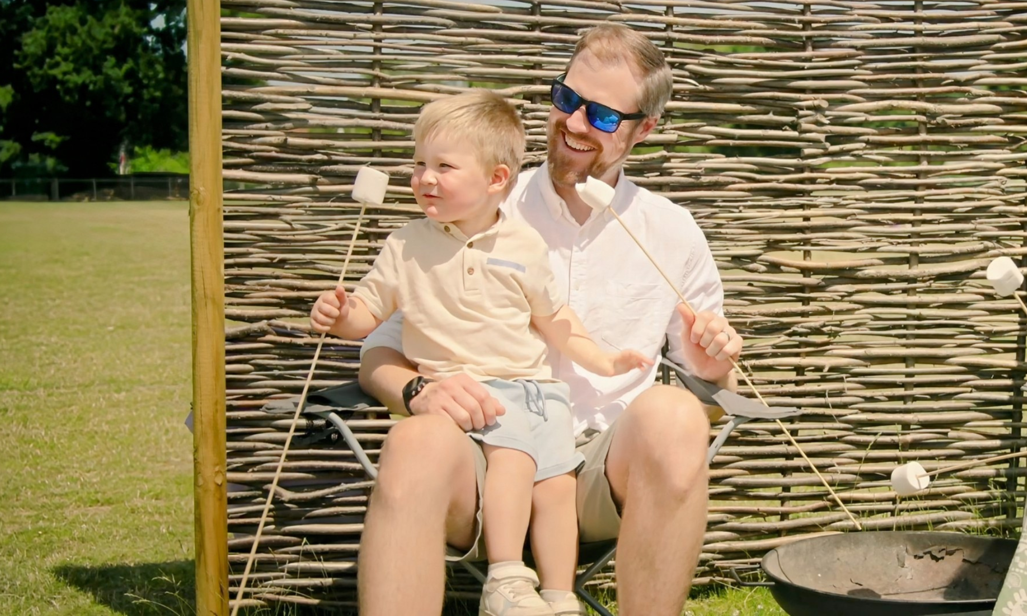 Outside, you’ll find a picnic table with parasol, a firepit for marshmallow toasting, and a reed fence for added privacy.