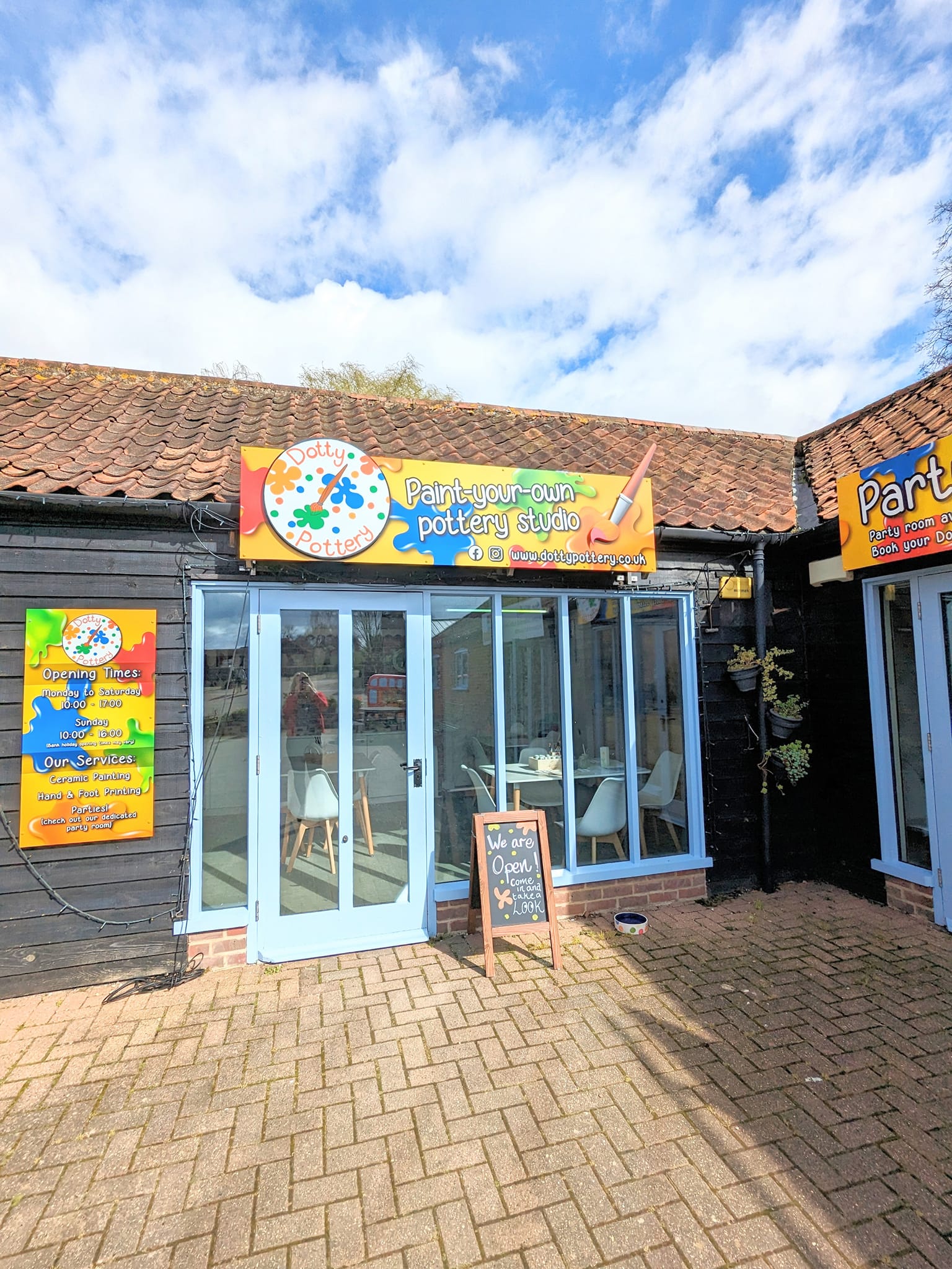 The Dotty Pottery studio at Wroxham Barns is the second studio for Rebecca and Pippa. There is an onsite café which can offer hot and cold refreshments which can be consumed in the Dotty Pottery studio whilst you paint. There is also a dedicated party room to host birthday parties, baby showers and other get togethers.