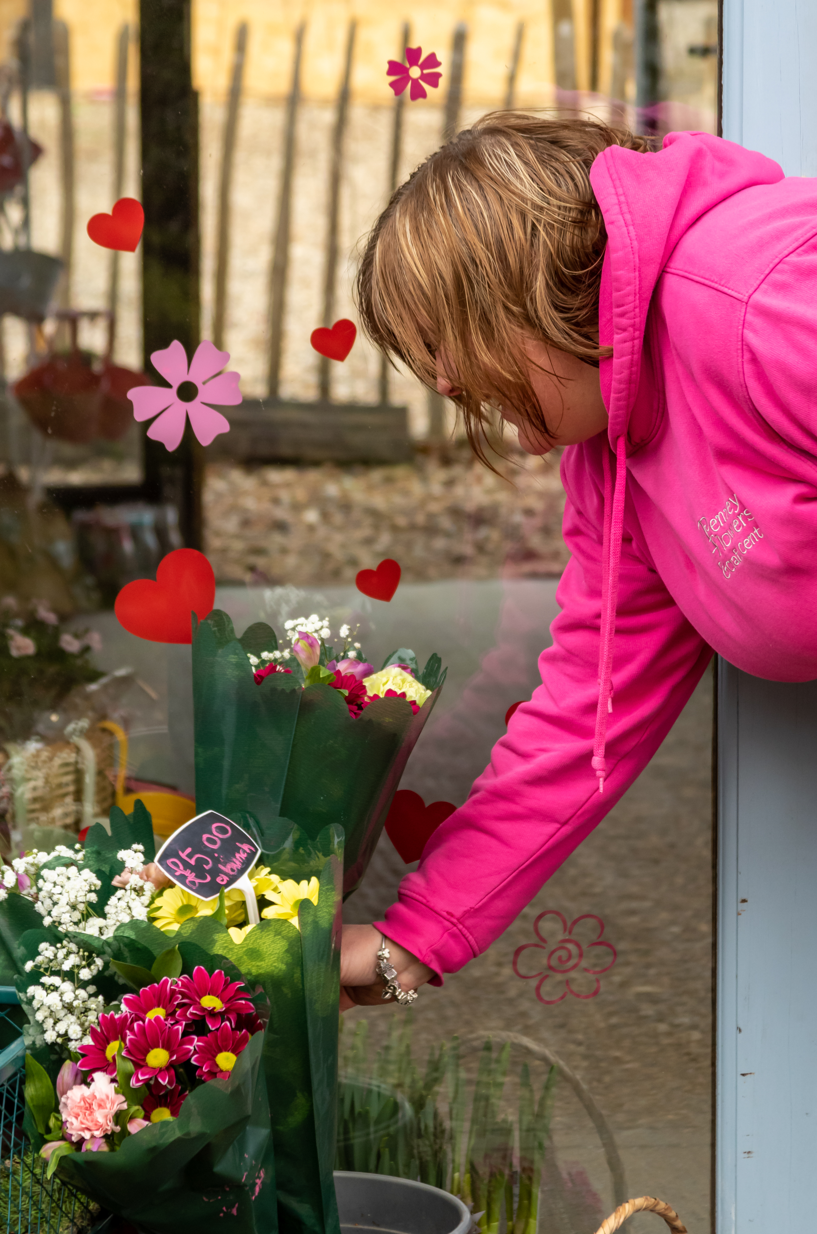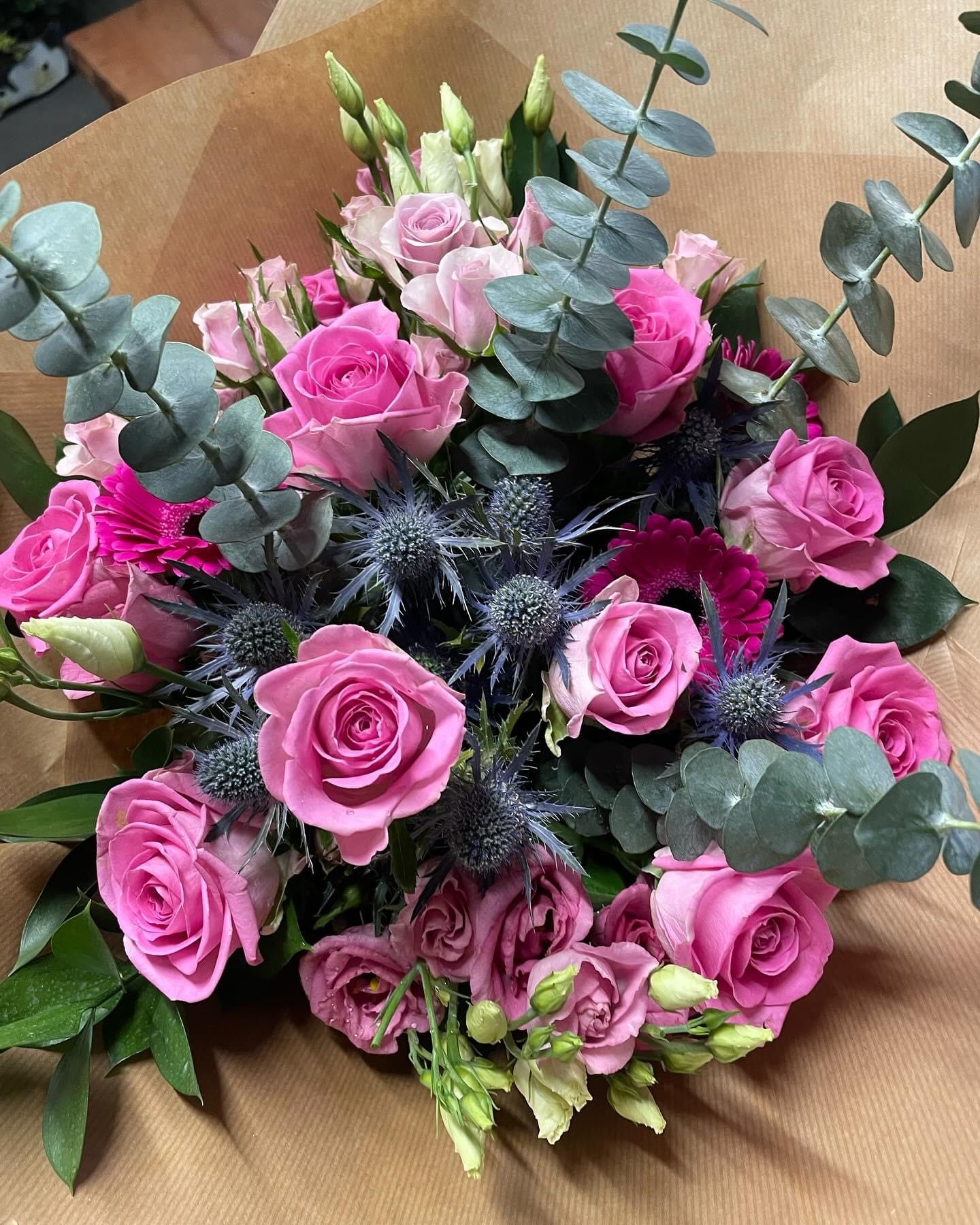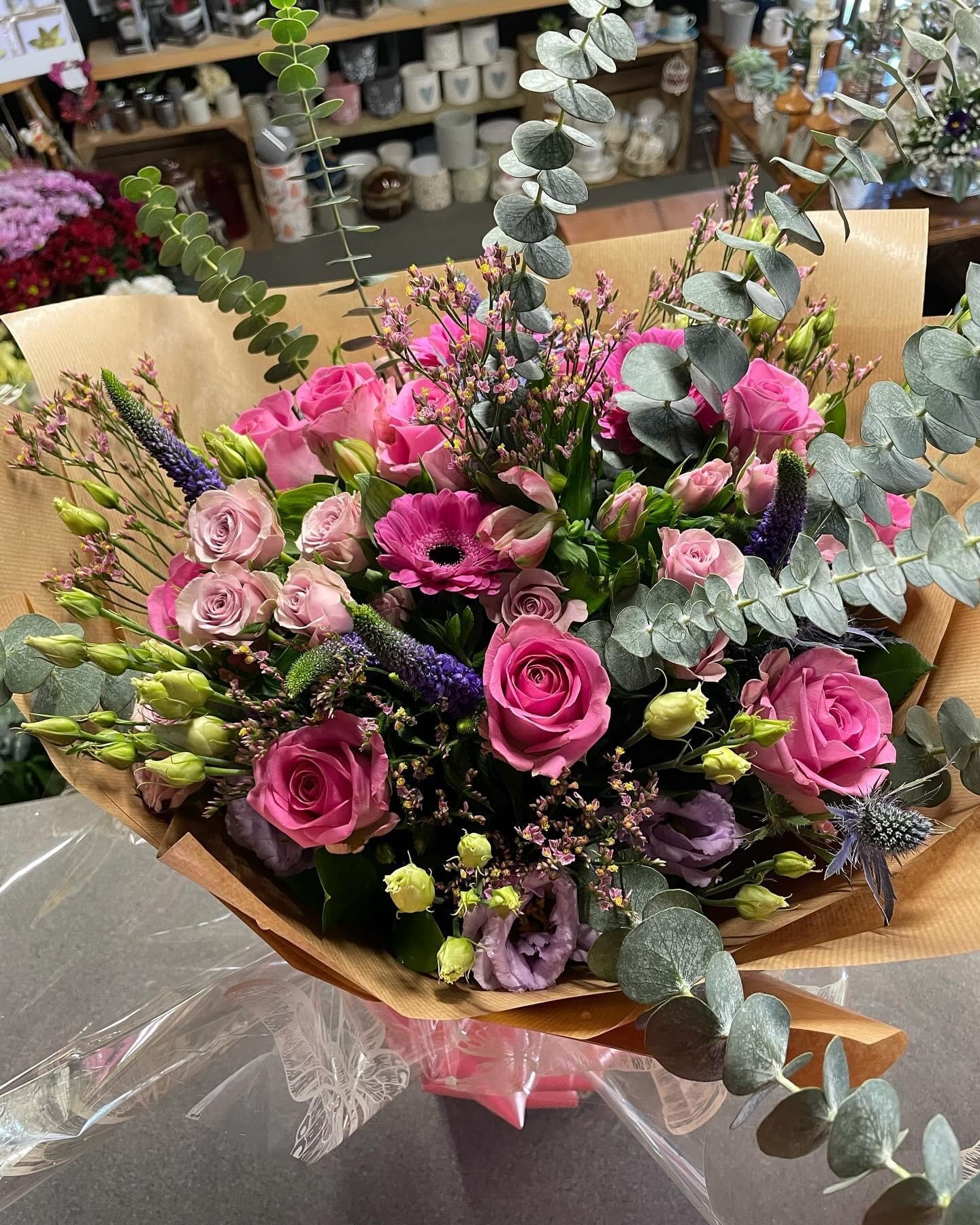 A selection of fresh cut flowers are available in store for handtied bouquets to take away.