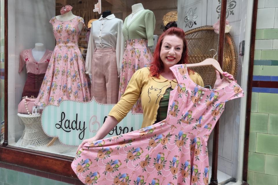 The collection, ‘Lovebirds and Lockets’, draws inspiration from Bridgerton-era elegance, featuring soft pinks, blues, and greens, with delicate details such as pearly buttons and a striking contrasting bustle bow. Currently, it’s available in a swing dress and a high-waisted swing skirt, with more shapes planned throughout Summer.